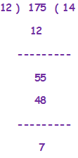 1) Divide 175 by 12 and verify the division algorithm