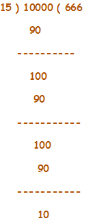 Here we can find that, 15 is the divisor, 10000 is Dividend, 666 is Quotient, and 10 is remainder.