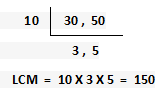 150 ÷ 30 = 5 , 150 ÷ 50 = 3