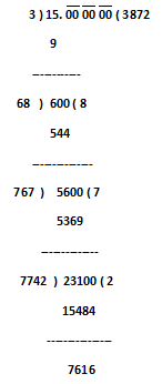 Step.15) Write 2 X 7742 = 15484 below the dividend and subtract. We find the reminder 7616, and the process continues…… as per the zero you have entered after decimal places.