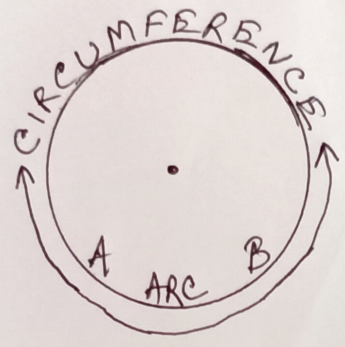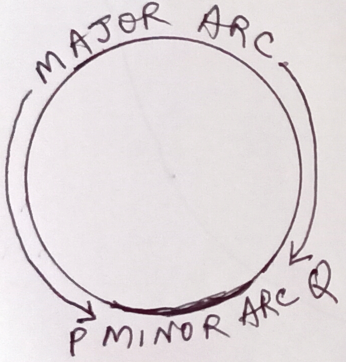 When P & Q are two points on a circle not at the ends of a diameter, the smaller part of the circle from P & Q is called the minor arc and the largest part from P & Q is called the major arc.