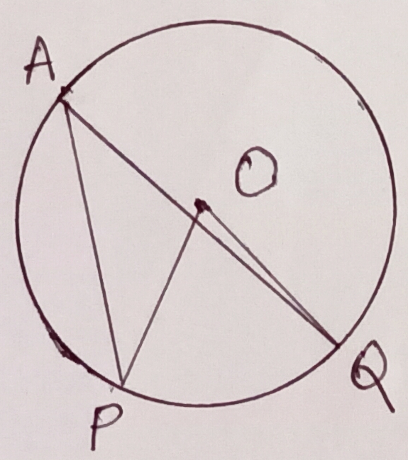 In the figure, A is a point on a circle that has its centre at O. PQ is an arc of the circle. Then ∠PAQ is the angle subtended by PQ at point A of the circle. the ∠PAQ is the angle subtended by PQ at the centre ‘O’ of the circle.