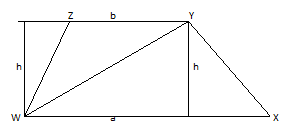 In the figure, WX and ZY are the parallel sides of the trapezium WXYZ. The perpendicular distance between WX & ZY, that is the height of the trapezium is ‘h’