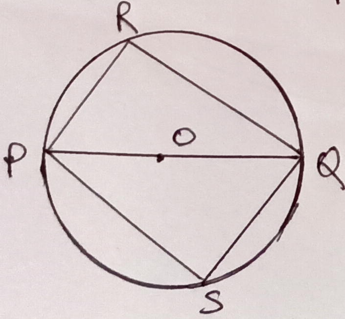 R and S are to be considered as the two points on the circle. ∠PRQ and ∠PSQ are examples of angles in a semicircle.