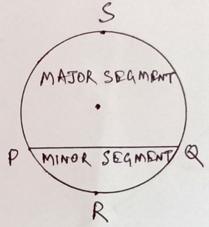 In the figure, the chord PQ cuts the circle into the minor arc PRQ and the major arc PSQ. The smaller part PRQP of the circular region is called the minor segment while the bigger part PSQR is called the major segment.
