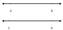 Two straight lines lying in the same plane are considered to be parallel to each other when they do not meet (if produced on both side), here, AB & CD are two parallel lines. We write AB || CD or CD || AB.