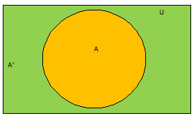 The shaded portion of the diagram represents the set A’, which is the complement of the set.