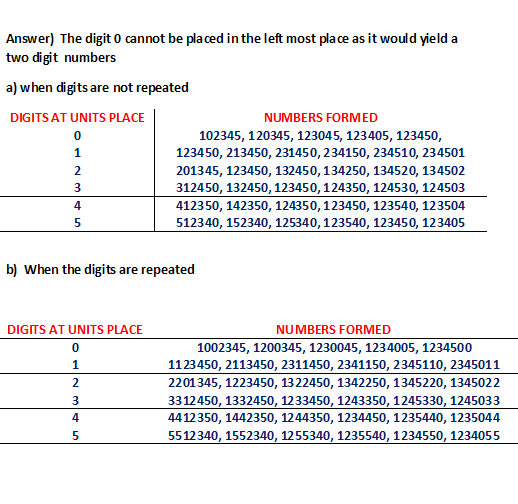 Example.2) Write all possible three-digit numbers using the digits 0, 1, 2, 3, 4 & 5 when the digits are a) not repeated, b) repeated