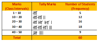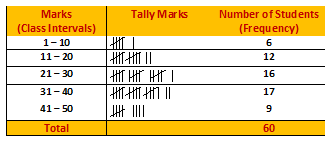 Note that – the class 1 – 10 means, marks obtained from 1 to 10, including both. Same is applicable for other group also.