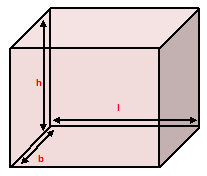 Cuboid – A rectangular solid bounded by six rectangular plane faces is called a cuboid. A match box, a chalk box, a brick, a block, a book, etc., are all examples of a cuboid. A cuboid has 6 rectangular faces, 12 edges and 8 vertices. Let us considered a cuboid of length = l units, breadth = b units, and height = h units.