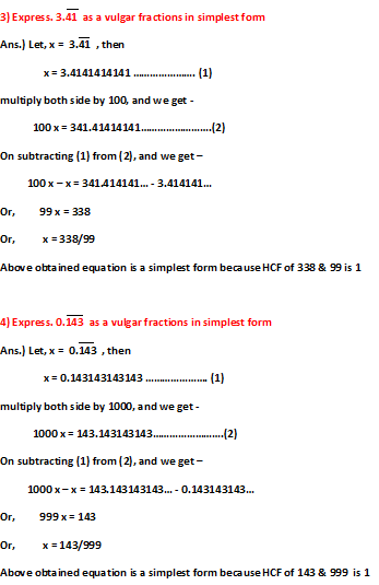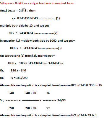 A fraction whose denominator cannot be expressed as a power of 10, is called a vulgar fraction. Thus, each of the fraction 17/23, 24/129, 45/37, 47/123, etc. are all vulgar fraction.