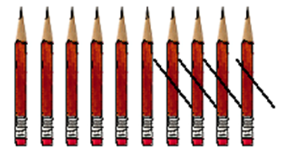 From the above picture there are 10 no.s Pencils, from there 4 no.s Pencils are taken away, say 10 – 4 = 6, so the remaining number of Pencils are 6 no.s.