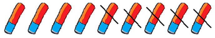 From the above picture, there are 9 no.s Eraser, from there 5 no.s Eraser are taken away, say 9 – 5 = 4, so the remaining number of Erasers are 4 no.s.