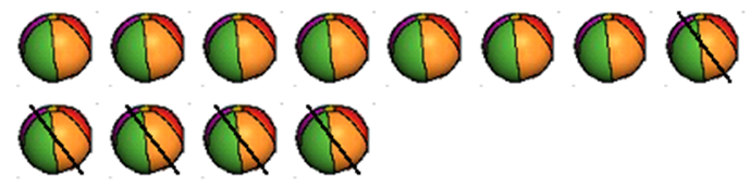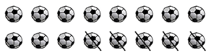 From the above picture, there are 16 no.s Football, from there 5 no.s Footballs are taken away, say 16 – 5 = 11, so the remaining number of Footballs are 11 no.s.